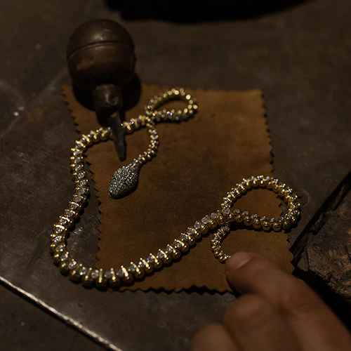 Eşsiz mücevherlerin en önemli özelliklerinden birinin tek tek elde yapılması olduğuna inanıyoruz. Bu nedenle tasarımlarımızın her biri nesillerdir mücevher ustası olan zanaatkârlar tarafından Kapalıçarşı’daki atölyemizde özenli ve maharetli el işçiliğiyle üretiliyor.