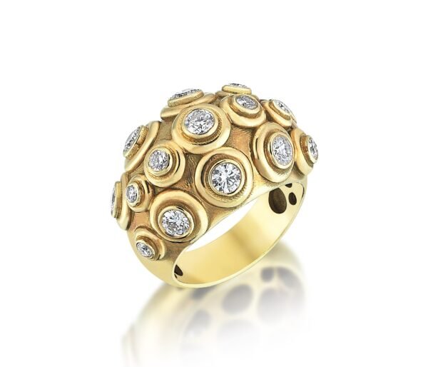 Eski çağlardan kalma mağara çizimlerinden, müzelerde sergilenen antik buluntulardan esinle tasarladığımız bir mini altın yüzük serisi bulunuyor. Kurti kaplan, yılan ve panter desenlerini çevreleyen işaretler, yıldızlar, çizgiler arkeolojiye ve geçmişe gönderme yapıyor.