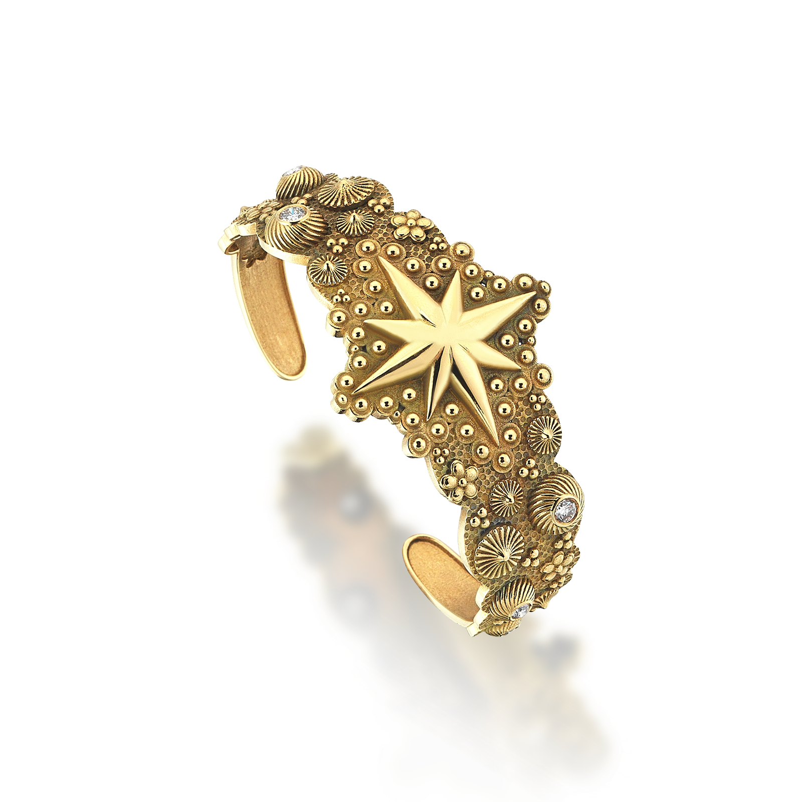 Kuzey Yıldızı nerede olursanız olun her zaman doğru yönü bulmanızı sağlar… Doğanın yol göstericiliğinden ilham alan bu modeli üsüleyen farklı formlarda ve ebatlardaki “kabarcıklar” yolunuza çıkabilecek engelleri ve onları mutlaka aşabileceğimizi, pırlantalar ise sonunda ışığa ulaşacağımızı simgeliyor.