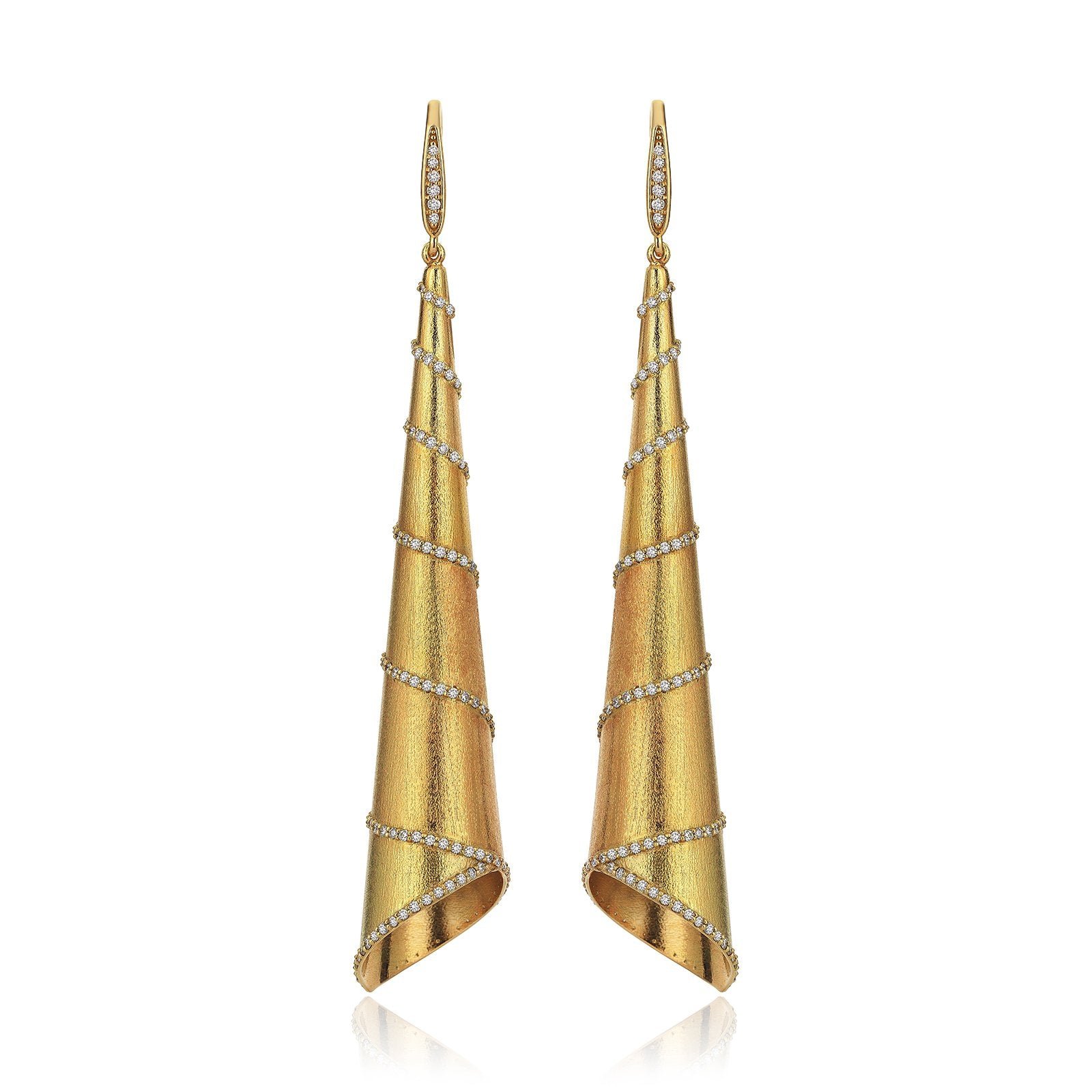 Önemli bir davette tek bir parçayla iddianızı ortaya koymak istiyorsanız, aradığını altın küpeler işte burada! İnce şerit oluk detayıyla dikkat çeken küpelerin uzunluğu toplamda yaklaşık 8 cm.
