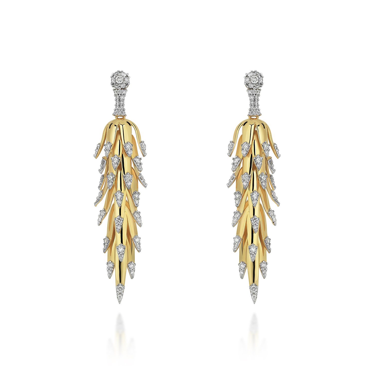 Hareketli parçaları, onların arasında gizlenmiş minik birer hazine gibi ışıldayan pırlantalarıyla göz alıcı bir tasarım. Gece boyunca kulaklarınızdan yüzünüze, çevrenize yayılacak ışıltıya hazır olun! Tamamen el yapımı ve sınırlı sayıda üretim bu eşsiz küpeleri daha yakından görmek için showroom’umuza davetlisiniz. Ayrılamayacaksınız.
