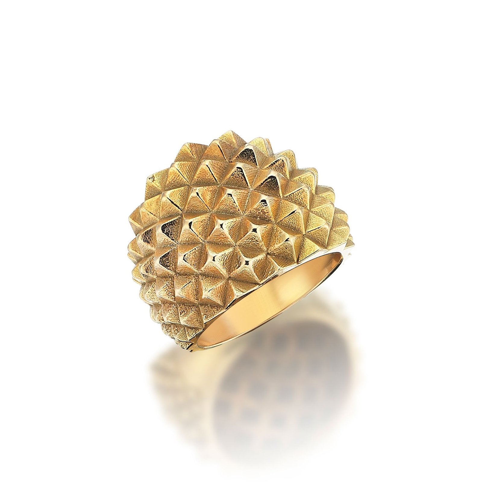 Retro tarzı mücevherde de sevenler için tasarladığımız altın yüzük Thorn, keskin geometrik şekillerle sadeliğin dışına çıkıyor.